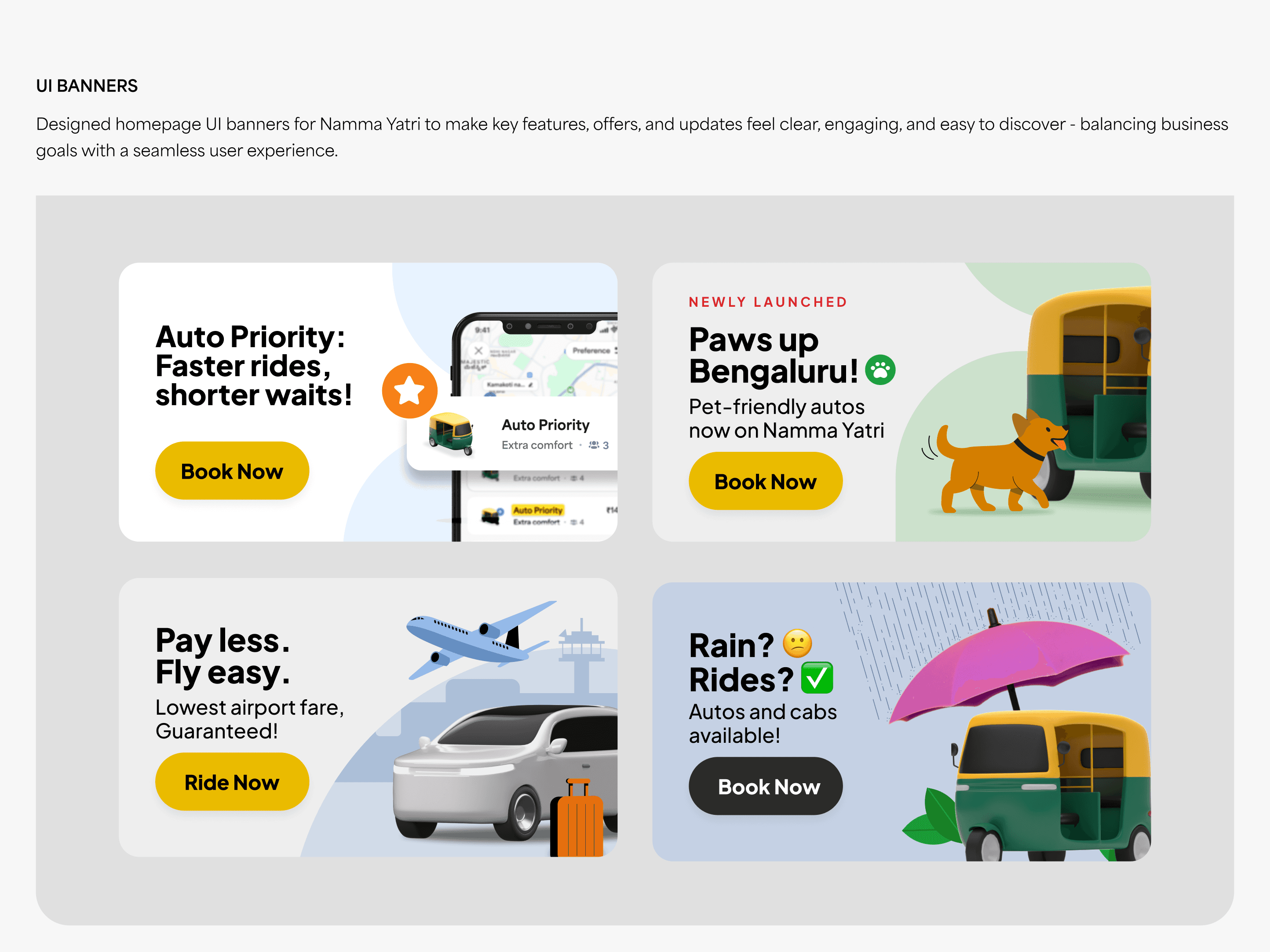 For the past three years at Namma Yatri, I’ve grown from a visual designer into a senior creative - leading projects, mentoring a team, and shaping design across product, marketing, and city-wide brand experiences. It’s been incredibly fulfilling to see my work move beyond screens and become part of how people experience mobility in different cities.