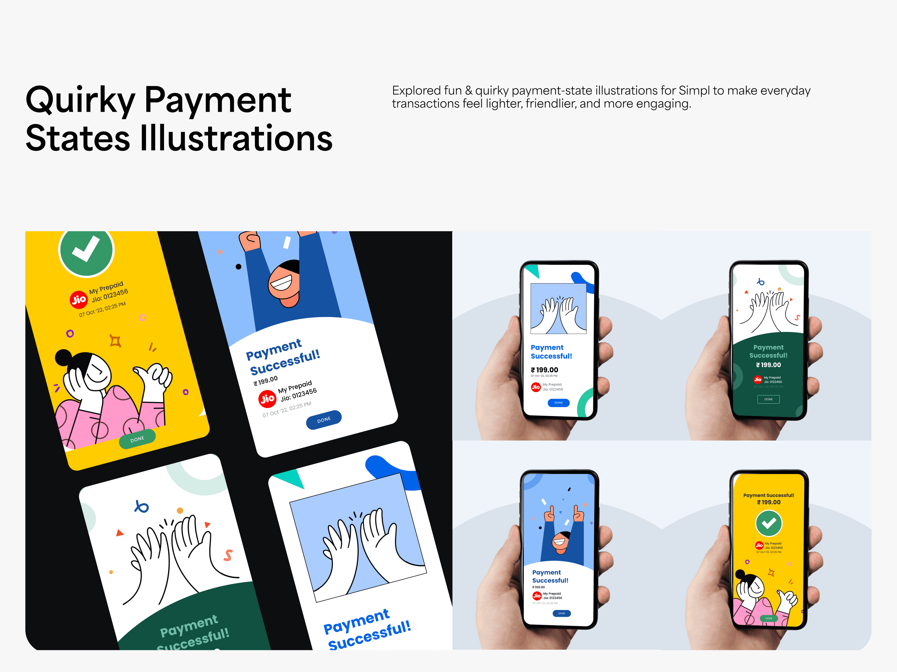 One of the things I really enjoyed at Simpl was creating UI illustrations within the app, where visuals had to be both expressive and functional. It pushed me to think beyond aesthetics and understand how design supports real product experiences. More on this is here.